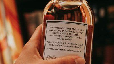 Die Liebe zum Whisky währt schon lange: bereits 2010 erwarb Matthias Kornherr sein erstes Whisky Diplom in Dublin. Als er dann 2017 an einem Blending Seminar teilnimmt, erwächst daraus die Vision seine Leidenschaft zum Beruf zu machen. Seitdem dreht sich im Leben des gelernten Schreiners alles um Geruch, Geschmack und natürlich um Genuss – und so waren die ersten sieben eigenen Whisky- und Rumsorten schnell entwickelt. Doch nicht nur das Experimentieren mit Rezepturen und die handwerkliche Herstellung hochwertiger Spirituosen begeisterten Matthias, er wollte sein Know-How, und seine Passion für andere Menschen erleb- und erfahrbar machen. Folgerichtig rief Matthias hauseigene Tastings ins Leben mit dem Auftrag Information, Unterhaltung und Genuss stimmig zusammenbringen. Erst im Highlander Coburg und nun im eigenen Laden auf der Ernstfarm arrangiert er stimmungsvolle Abende mit Verkostungen und Live-Musik, doch dazu später mehr.