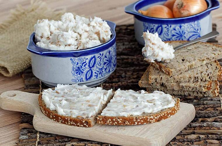 Griebenschmalz auf frischem Brot - einfach lecker! Wie ihr den Schmalz selbst zubereiten könnt, findet ihr hier.