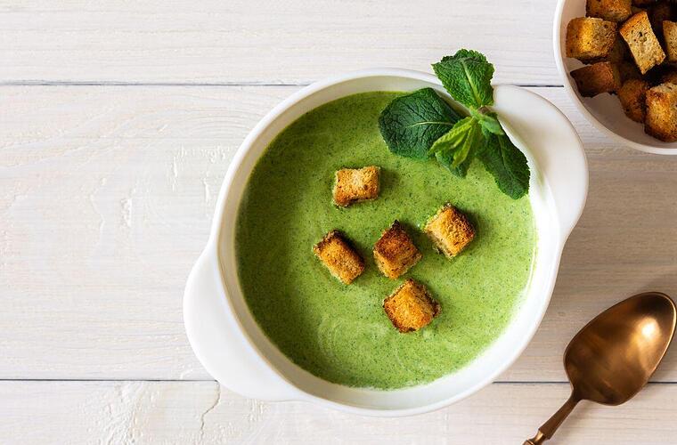 Grünkohl ist eines unserer liebsten Wintergemüse, da er so wunderbar vielseitig ist. Denn er schmeckt nicht nur mit Würstchen und Kartoffeln, sondern ist auch hervorragend für eine Cremesuppe geeignet. Dazu passen perfekt unsere Fränkischen Bröckala, in Würfel geschnitten und geröstetes Weißbrot. Wir wünschen an gud'n!