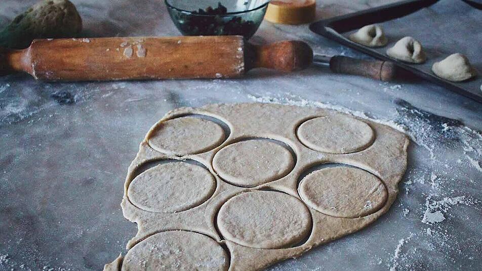 - Streue nun Mehl auf die Arbeitsfläche und rolle den Teig portionsweise in 5 mm dünne Schichten aus. Dann kann das Ausstechen auch schon losgehen. Tipp: Damit sich der Teig gut von den Förmchen löst, können diese vorher kurz in Mehl getunkt werden.