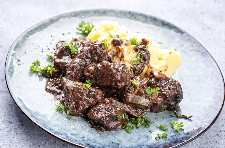 Hähnchenherzen-Ragout in dunkler Sauce mit fränkischem Likörwein im Portweinstil abgeschmeckt - klingt gut? Dann findet ihr hier das Rezept für die besondere Hausmannskost.