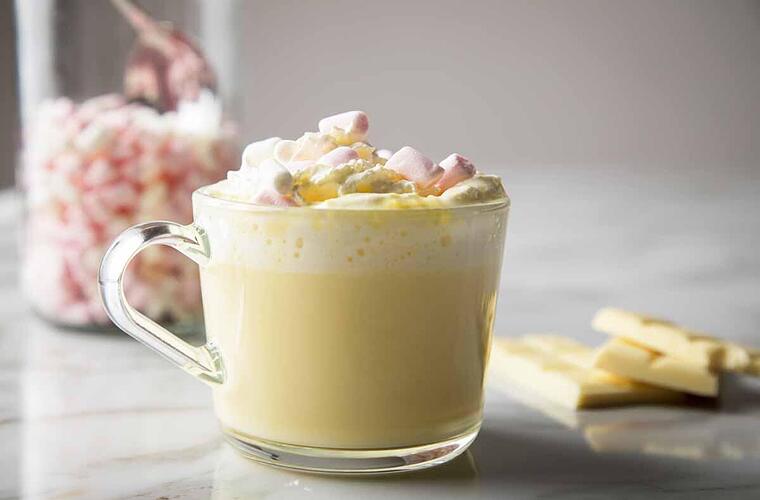In der kalten Jahreszeit tut so eine heiße Tasse Milch richtig gut. Noch besser ist heiße Milch mit weißer Schokolade und Sahne. Für das besondere Extra sorgen ein Schuss Likör für die Großen und süße Mini-Marshmallows für die Kleinen. Wir bekommen allein beim Anblick gute Laune!