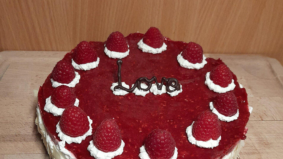 - Mit dem anderen Teil Tupfen auf den Kuchen geben und die frischen Himbeeren darauf setzen. Genießen!