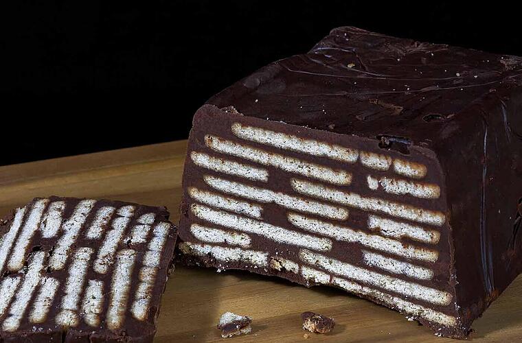 - Bei Zimmertemperatur in Scheiben schneiden und servieren. Im Kühlschrank ist der Kalte Hund eingepackt für gut 3 Wochen haltbar.