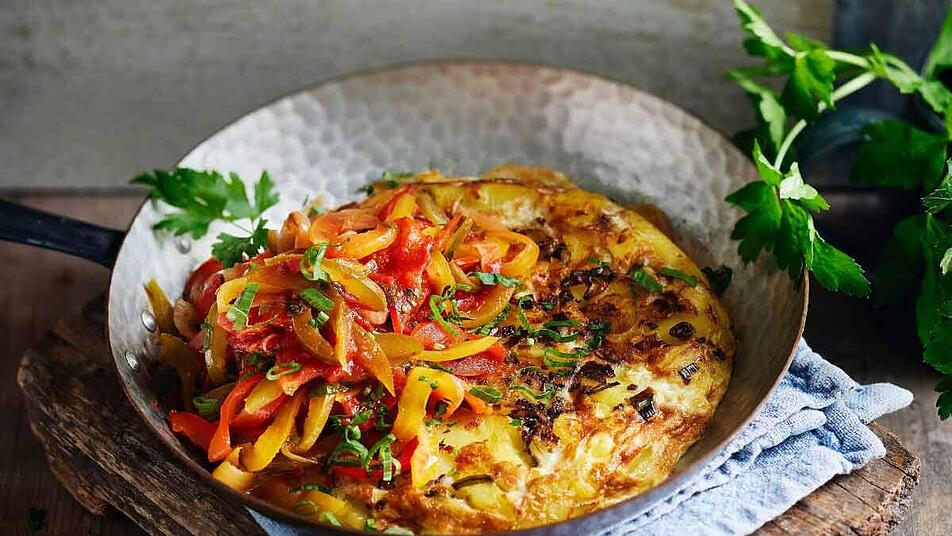 Dieses deftiges Kartoffel-Omelett mit Paprikagemüse ist perfekt für einen gemütlichen Abend zuhause oder als schnelle Mahlzeit zwischendurch. Die Zutaten harmonieren perfekt miteinander, sodass im Handumdrehen ein schnelles Alltags-Gericht entsteht. Quasi die ländlich-fränkische Version von spanischen Tortillas ;-) Das einfache Rezept lässt sich schnell zubereiten und sorgt garantiert für zufriedene Gesichter am Esstisch.