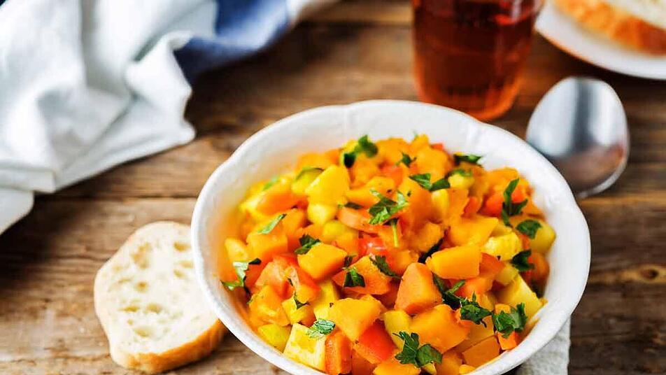 Im September füllen sich so langsam die Kürbisregale. Und auch das Wetter trägt mit verregneten Tagen und kühlen Nächten dazu bei, dass die Sehnsucht nach Kürbisgerichten schnell wieder steigt. Wir haben heute so richtig Lust auf ein nahrhaftes, wärmendes Abendessen - und da kommt der Kürbis-Kartoffel-Eintopf wie gerufen! Besonders toll: dieser Gemüseeintopf ist vegan und somit auch perfekt für alle Familienmitglieder und Gäste geeignet.
