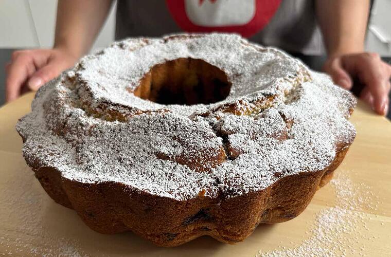 - Den Kuchen nach dem Backen vorsichtig aus der Form lösen. Wer mag, kann ihn dann noch mit etwas Puderzucker bestreuen.