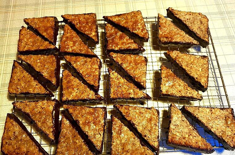 - Zum Schluss die Kanten der erkalteten Nussecken mit Schokoladenglasur bestreichen.