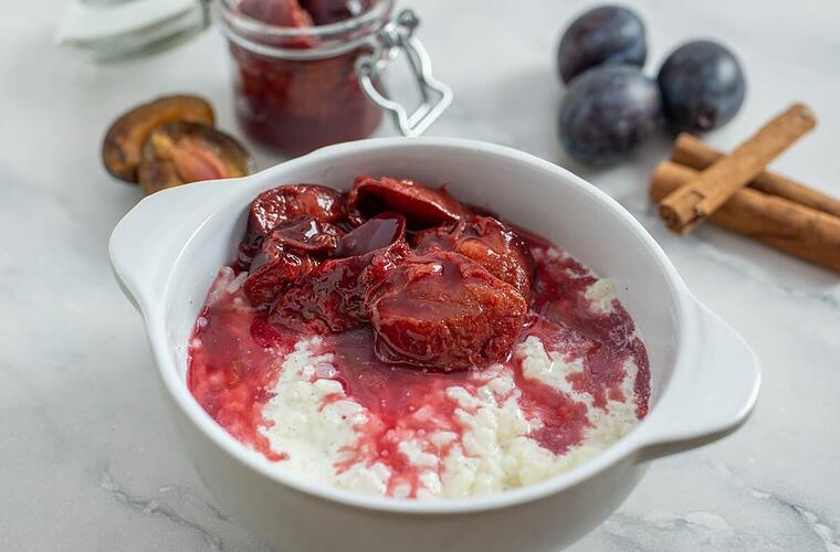 Milchreis mit Zwetschgenkompott – das schmeckt nach Kindheit. Wer erinnert sich nicht an eine Schüssel mit leckerem Milchreis, den Mama oder Oma zubereitet hat? Der cremige Milchreis zusammen mit dem fruchtig-süßen Zwetschgenkompott schmeckt unwiderstehlich. Einfach gemacht und immer lecker, ob als Dessert oder süße Hauptspeise.