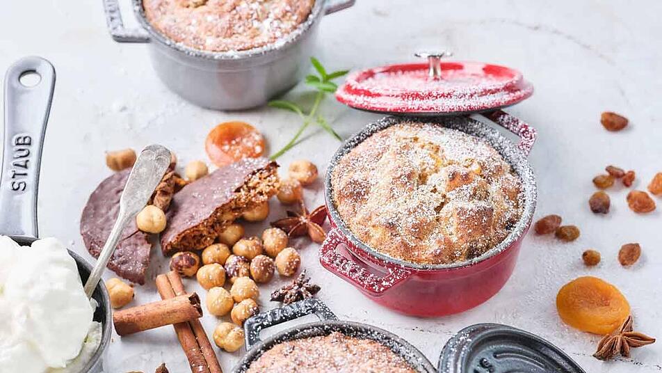 Nürnberger Lebkuchen schmeckt pur und in der Adventszeit – frisch und saftig – sicher am besten. Aber das typische Backwerk aus Franken eignet sich auch als Hauptdarsteller in weihnachtlichen Desserts. Der bayerische Profi-Koch Giuseppe Messina bringt den klassischen Lebkuchen als Gugelhupf, Scheiterhaufen oder in einer Bayerisch Creme in neue Formen. Wer für das Festessen nach weiteren Inspirationen sucht, der findet hier überraschende Ideen mit typisch bayerischen Zutaten.