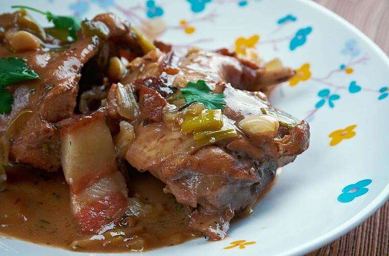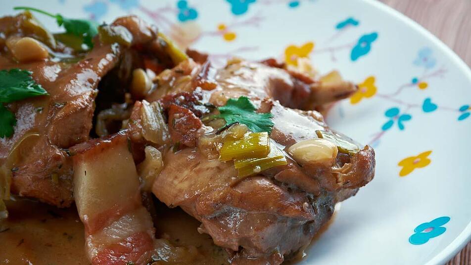 Hasenpfeffer ist ein würziges Ragout, das aus Hasenfleisch, dem sogenannten Hasenklein, gekocht wird. Mit diesem authentischen Rezept von Oma gelingt die Fränkische Hausmannskost besonders gut. Dazu schmecken Spätzle, Pilze, oder Kartoffeln.