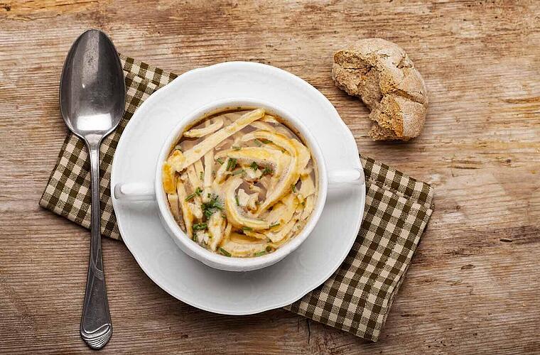 Unsere Pfannkuchensuppe ist nicht nur eine günstige & besondere Vorspeise, sondern ist auch die perfekte Möglichkeit übrig gebliebene Pfannkuchen lecker zu verwerten! Hier findet Ihr das Rezept, wie Ihr sie ganz einfach zubereiten könnt.