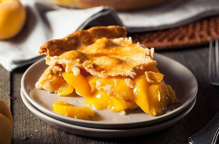 Zuckersüße Pfirsiche, ein knusprig buttriger Boden und eine herrliche Soße aus cremigem Karamell - wenn das nicht nach einer erfrischenden Köstlichkeit klingt!