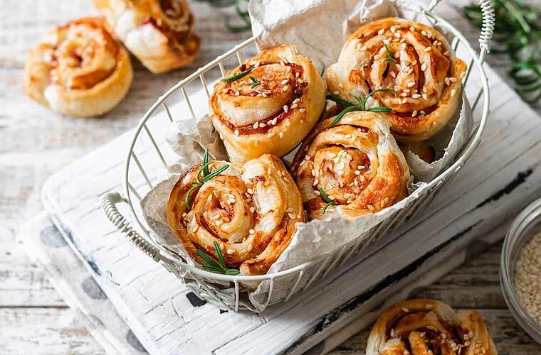 Wir lieben Pizza! Für Geburtstage weichen wir aber gerne auf diese leckeren Pizzaschnecken aus Blätterteig aus. Sie sind schnell zubereitet, schmecken so gut wie richtige Pizza aber eignen sich einfach besser als Fingerfood. Wer mag, kann das ganze natürlich durch Salami, Gemüse oder vegetarische Optionen abwandeln.