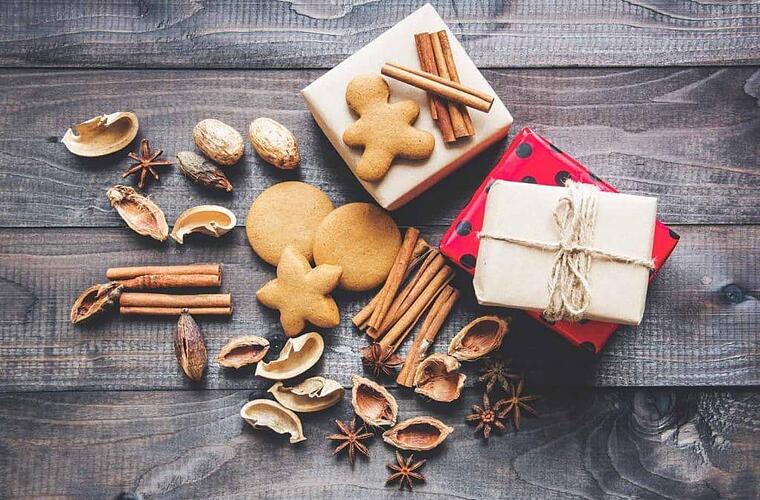 Auch weihnachtliche Gewürze dürfen in der Weihnachtsbäckerei nicht fehlen: Zimt, Kardamom, Lebkuchengewürz, Muskatnuss oder Sternanis sorgen für die ganz besondere Note. Orangeat und Zitronat kommen ebenfalls in weihnachtlichen Leckereien häufig zum Einsatz.