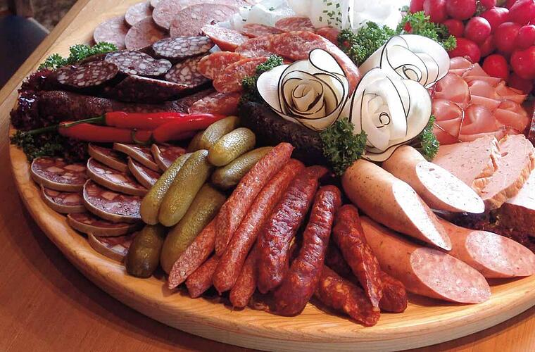 Kennzeichnend für die Produktion in familieneigenen Betrieben ist auch die handwerkliche Qualität. Denn schließlich stehen am Ende Geschmack und Frische im Vordergrund! Oft gibt es bei uns sogar Gasthöfe mit eigener Metzgerei. Dadurch kann nicht nur besonders frisches Fleisch im Restaurant genossen werden, sondern auch gleich noch der Wocheneinkauf an Wurstwaren erledigt werden. Beim Thema Fisch ist die sogenannte Teichzucht typisch für unsere Region, bei der die Fischbestände jährlich abgeerntet werden. Auch hier wird nachhaltig gezüchtet und der Fisch ist beim Verzehr besonders frisch. Einen Auszug aus den typischen Fleisch-, Wurst- und Fischspezialitäten der Metropolregion Nürnberg stellen wir im Folgenden vor: