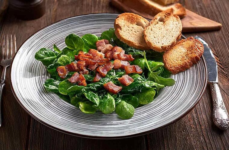 Knackiger Feldsalat trifft auf würzigen grünen Speck - wer kann da schon nein sagen? Abgerundet mit einem kräftigen Dressing entsteht ein einfacher, aber unglaublich leckerer Salat, der als Vorspeise oder Beilage zu deftigen Gerichten perfekt passt. Gerade in den Wintermonaten, wenn der Feldsalat Saison hat, ist dieses Gericht besonders beliebt.