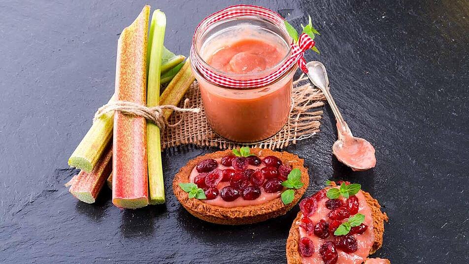- Den Johannisbeersud aufkochen, Cranberrysirup zugeben, Agar-Agar einrühren, aufkochen, über den Rhabarber gießen, kalt werden lassen, über Nacht im Kühlschrank gut anziehen lassen.