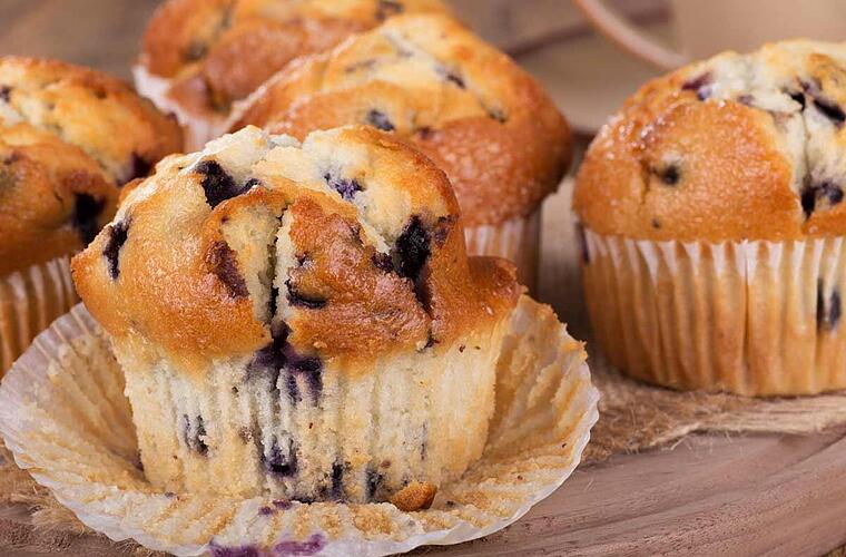 - Den Teig dann gleichmäßig in den Muffinförmchen verteilen. Ein paar Blaubeeren ebenfalls in die Förmchen geben und in den Teig drücken.