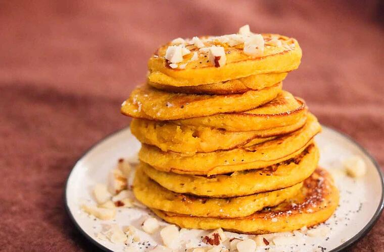 Wir lieben Pfannkuchen. Ob mit Zucker&Zimt, frischem Obst oder Schokolade. Doch diesen Herbst haben wir eine ganz besondere Kombination ausgepackt: Pancakes mit Kürbis! Diese saftigen, orangenen Pfannküchlein müsst ihr einfach versuchen!
