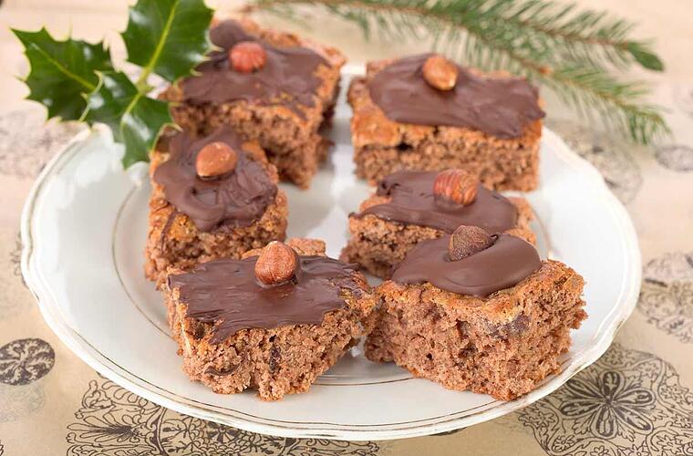 - Anschließend eine Schokoladenglasur auf den noch warmen Teig streichen. Nachdem alles etwas abgekühlt ist kann der Teig in kleine Streifen oder Rauten geschnitten werden.