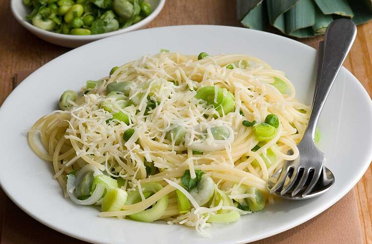 Lauch kann in Deutschland ganzjährig geerntet werden. Der Winterlauch jedoch schmeckt besonders intensiv und eignet sich daher perfekt für Suppen oder cremige Gerichte, wie unsere Lauchnudeln mit Käse-Sahne-Soße.
