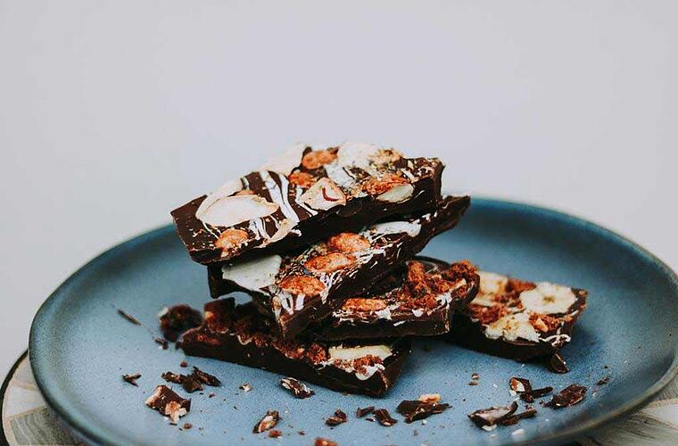 - Und nun wird es kreativ: Verteile deine Lieblingszutaten auf der Schokoladenschicht und drücke diese leicht an. Dabei sind den Kombinationen keine Grenzen gesetzt. Mit Honig und Meersalz kannst du der Schokolade einen ganz besonderen Geschmack verleihen.