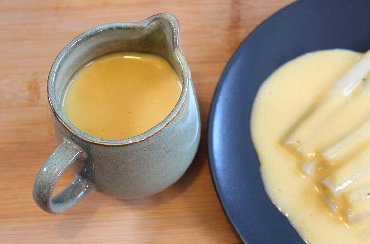 Cremig, buttrig und unwiderstehlich aromatisch – eine selbstgemachte Sauce Hollandaise ist der perfekte Begleiter zum Spargel und darf in der Spargelzeit in Franken auf keinem Tisch fehlen! Vergiss die Variante aus dem Päckchen: Mit diesem einfachen Rezept gelingt dir die klassische Sauce ganz unkompliziert selbst – und der Unterschied schmeckt man sofort!