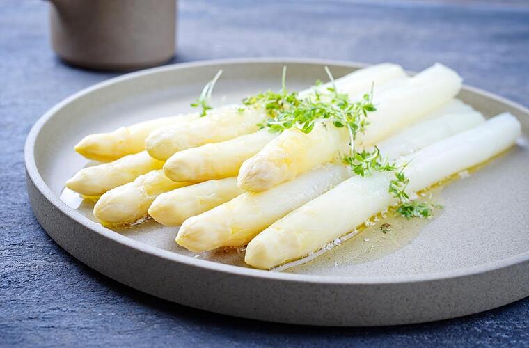 - Serviert den Spargel auf einem Teller und gebt anschließend die zerlassene Butter darüber.