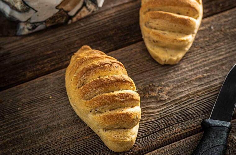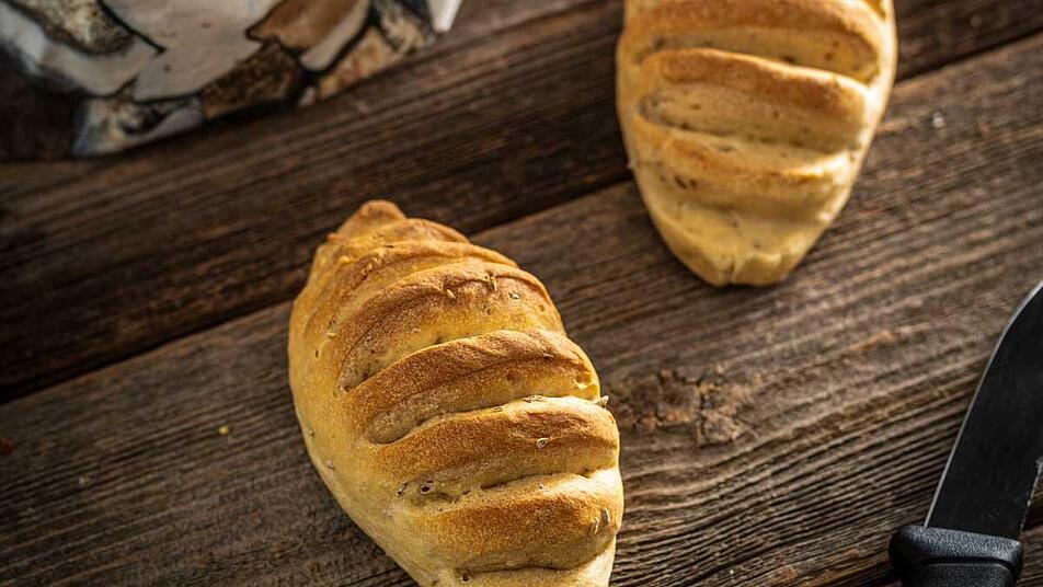 - Heize den Backofen auf 240 °C (Ober-/Unterhitze) vor. Gib dann die Spulweckla in den Backofen. Gib zusätzlich eine kleine Tasse Wasser auf ein Blech und schiebe dieses Blech unter das mit den Weckla. Backe die Spulweckla etwa 20 Minuten. Mein Tipp: Ohne die Gewürze und das Einschneiden gibt das ein sehr leckeres Grundrezept für Brötchen.