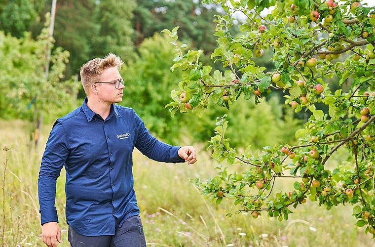 Auf inzwischen acht Hektar Land wächst heute fränkisches Streuobst. „Auf unseren Flächen sind die verschiedensten Früchte mit unterschiedlichsten Reifezeitpunkten heimisch, u.a. unterschiedliche Sorten von Apfel, Birne, Mirabelle, Quitte, Zwetschge, Kirsche“, berichtet der studierte Betriebswissenschaftler stolz. „Mit unserer Produktlinie Graturo, dessen Name sich aus Gratia und Natura zusammensetzt, vermarkten wir liebliche und harmonische Streuobstweine, Streuobstsäfte/Mischsäfte, Apfelessig und Apfel Balsamico“. Darüber hinaus hat der Betrieb mit der Produktline Schättler’s Landbrennerei auch Liköre und einige Holzfass gelagerte Schnäpse im Programm. Abgesehen von Streuobstprodukten stellen die Schättlers auch Whiskey und Gin her. “Neben unserer Begeisterung, Liebe und Hingabe steckt auch das besondere Geschmackserlebnis einer Streuobstwiese in unseren Produkten. Die Natur direkt im Glas. Das schmeckt man in jedem Schluck“, beschreibt der 26-Jährige.
