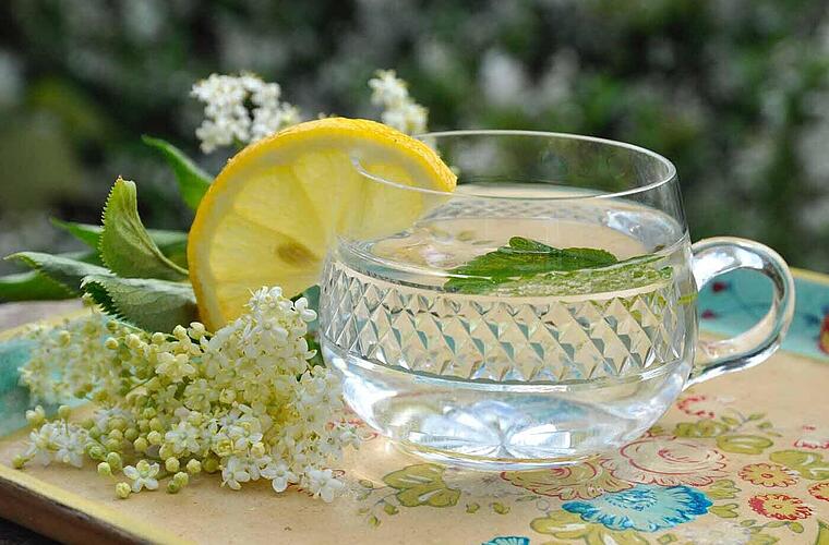 - Nun werden Holunder und Zitrone mit dem heißen Zuckersirup übergossen. Das Gemisch wird abgedeckt und zieht bei Zimmertemperatur drei Tage lang durch. Es ist wichtig, den Sirup ab und an durchzurühren.