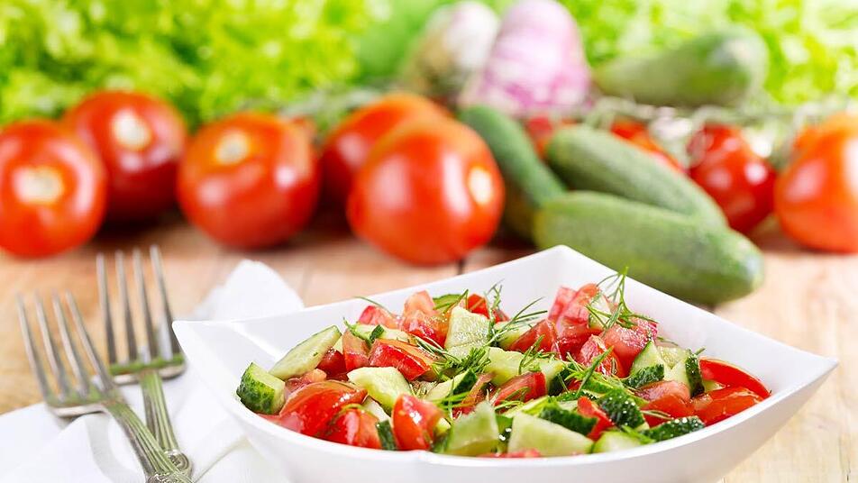 Ein köstliches Rezept für den nächsten Grillabend: Unser Tomaten-Gurken-Salat. So lassen sich wunderbar regionales Gemüse - vielleicht sogar aus dem eigenen Garten? - verarbeiten. Noch dazu ist der Tomaten-Gurken-Salat schnell gemacht und schmeckt einfach so lecker!