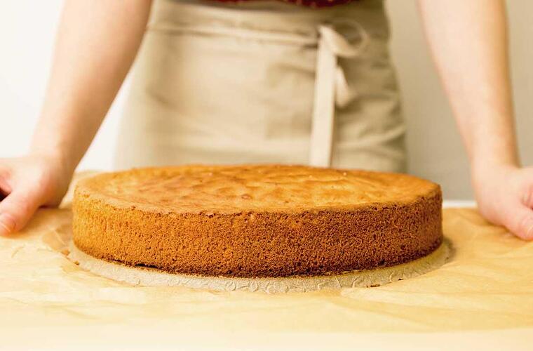 - Den Teig in der Tortenbodenform verteilen und auf der mittleren Schiene bei 175°C 20-25 Minuten backen, bis er hellgelb ist.
