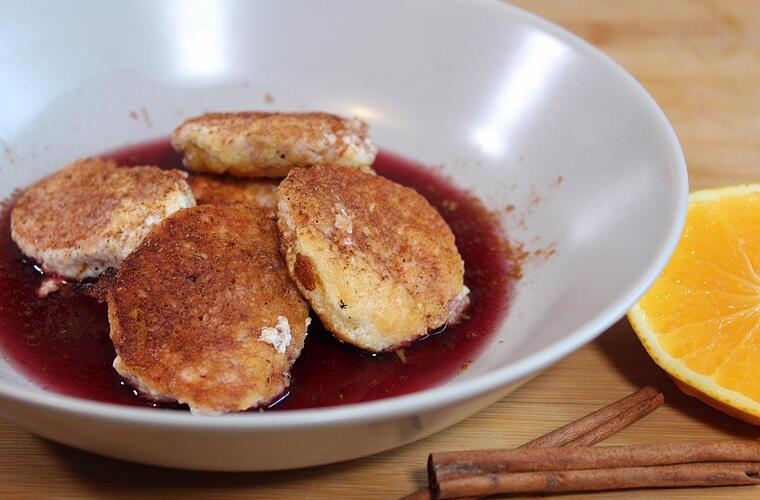 - Dann werden die Jungfern auf einem tiefen Teller angerichtet und mit der Weinsoße begossen. Das Dessert wird typischerweise warm genossen und vor allem im Winter zu Festlichkeiten serviert.