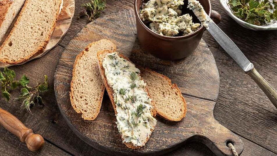 - Den Frischkäse mit Sahne, Zitronensaft, Salz und Pfeffer verrühren. Die fein gehackte Brennnessel unterrühren. Noch einmal abschmecken und servieren.