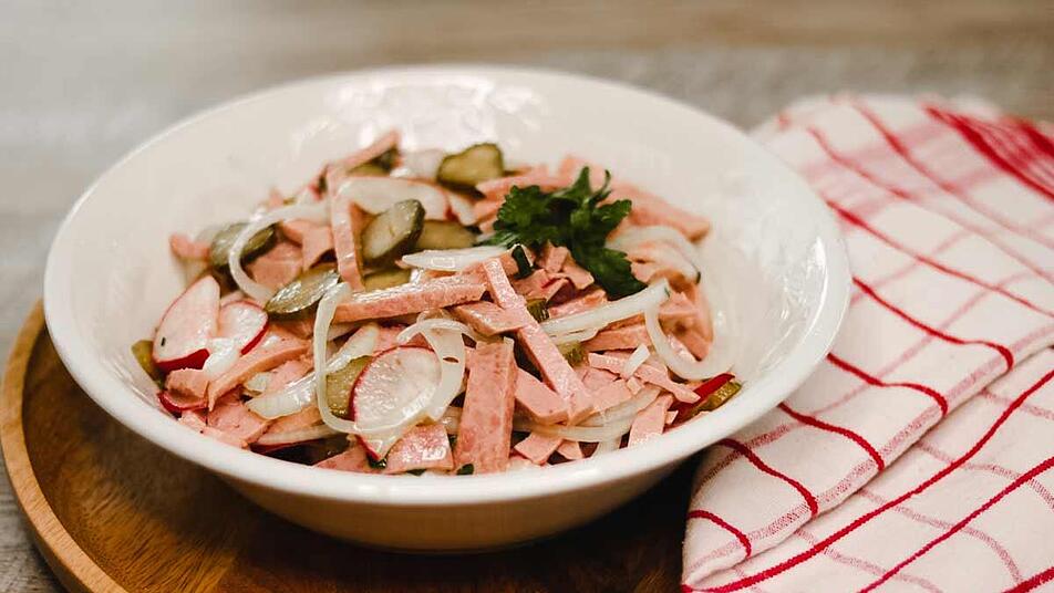 Ein echter Brotzeit-Klassiker und ein beliebtes kühles Abendessen: unser Wurstsalat ist das ideale Essen bei heißen Temperaturen. Außerdem ist er schnell und in wenigen Schritten zubereitet - und schmeckt garantiert immer. Versucht unser Wurstsalat Rezept nach heimischer Tradition.