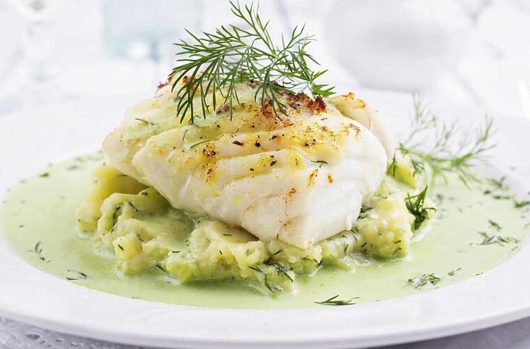 - Nun noch Dill hinzu geben und mit Zitronensaft abschmecken. Auf selbstgemachtem Kartoffelstampf servieren.