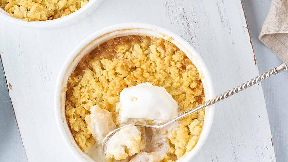 - Mehl, Zucker, Zimt und Butter in Flöckchen zu einem Streuselteig kneten. Apfel entkernen, fein würfeln und unter die Streuseln heben. Im vorgeheizten Backofen bei 200 Grad (Ober- und Unterhitze) 20 - 25 min backen.