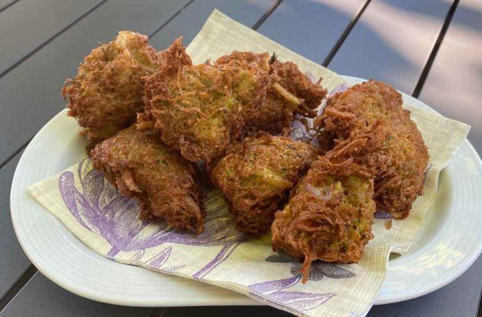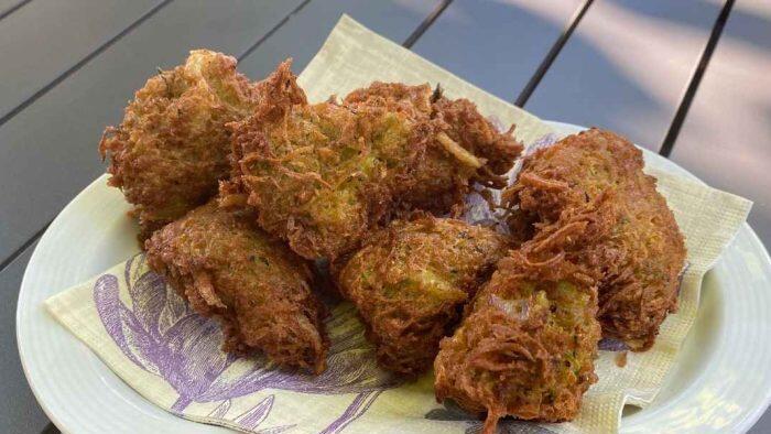 - Anschließend die Hände mit Mehl bedecken und ca. 15 Kugeln formen. In einer Pfanne mit heißem Öl flachgedrückt ausbacken, oder in die Fritteuse geben, bis sie von allen Seiten goldbraun sind.