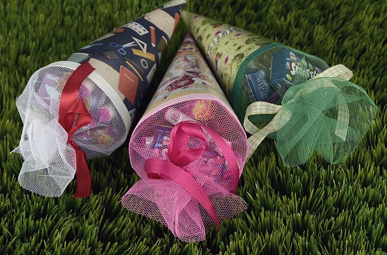 Süßigkeiten sind die Nummer eins, wenn es um den Inhalt der Schultüte geht. Nicht nur, weil sich jedes Kind über eine süße Überraschung freut, sondern auch, weil sie sich super eignen, um die Tüte perfekt auszufüllen. Vor allem die Spitze der Schultüte ist eine knifflige Stelle, da sie leicht umknicken kann. Um das zu verhindern, kannst du einfach eine Tüte gebrannte Mandeln dort hinpacken.