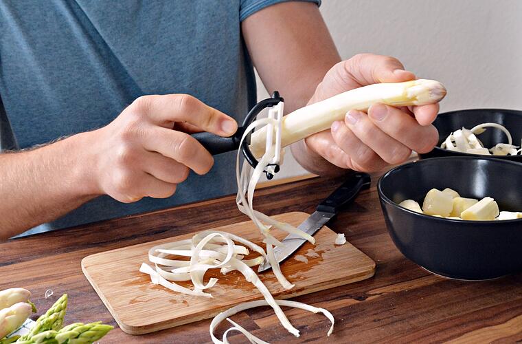 Weißen Spargel richtig schälen: So macht es der Profikoch