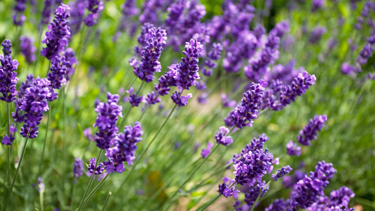 Ursprünglich aus dem Mittelmeerraum, fühlt sich der Lavendel (Lavandula angustifolia) heute auch in deutschen Gärten wohl. Er bevorzugt warme Standorte und durchlässige Böden. Hobbygärtner können sich (je nach Sorte) von Juni bis November an den lila Blüten erfreuen.
