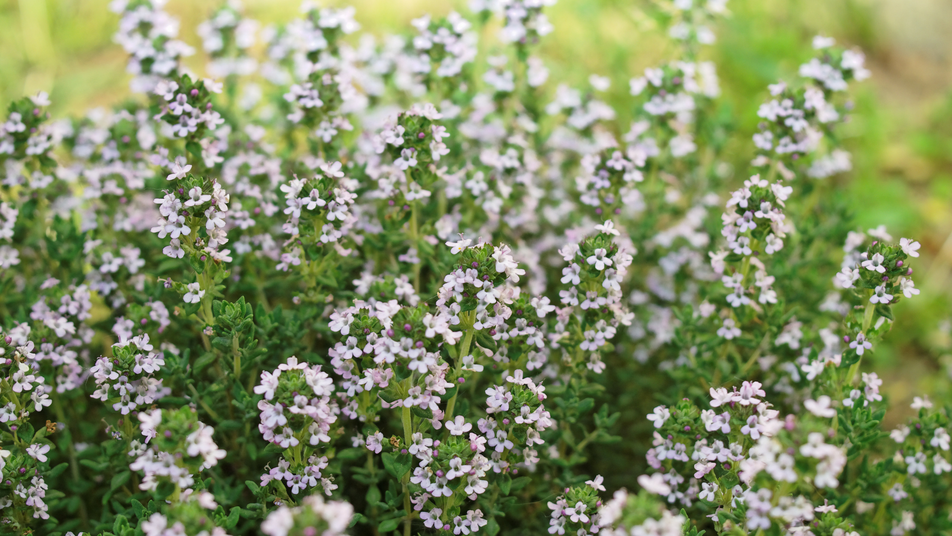 Der Echte Thymian (Thymus vulgaris) hilft bei Erkältungen, Atemwegsbeschwerden, Zahnfleischentzündungen, Hautunreinheiten, Verdauungsproblemen und sogar bei leichten Depressionen. Das Kraut gilt außerdem als Klassiker bei Husten oder Heiserkeit, denn es löst den Schleim und wirkt sich positiv auf das Immunsystem aus.