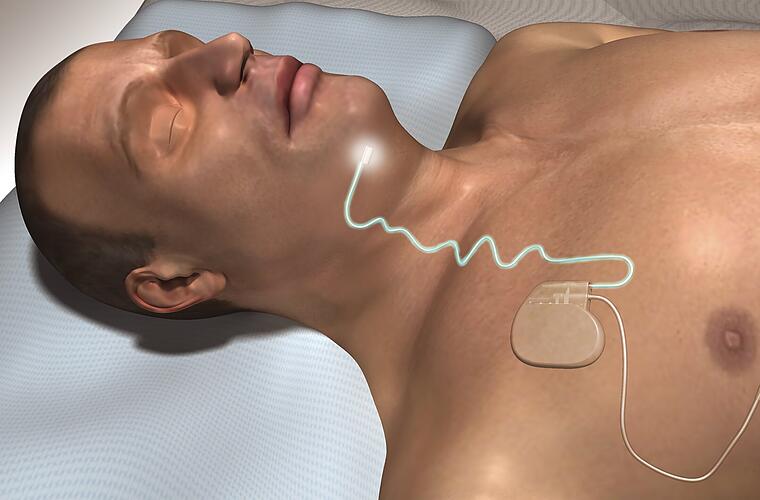 Bei einer mittelgradigen bis schweren obstruktiven Schlafapnoe mit 15 bis 65 Atemaussetzern pro Stunde kann eine Stimulation des Zungenmuskels Abhilfe schaffen. Dafür sind insgesamt nur drei kleine Schnitte an Hals und Brustkorb notwendig. Ein Schnitt für die Implantation der Stimulationselektrode am Zungennerven, der zweite für den sogenannten Impulsgenerator, ähnlich einem Herzschrittmacher, der in einer kleinen Hauttasche unterhalb des Schlüsselbeins implantiert wird, und ein dritter für den Atemsensor. Dieser misst den Atemrhythmus der Lunge und gibt ein Signal an den Impulsgenerator weiter. Der Generator wiederum aktiviert die Stimulationselektrode am Zungennerv, die daraufhin den Zungenmuskel stimuliert. Dadurch soll verhindert werden, dass die Zunge oder umliegendes Gewebe im Schlaf zurückfallen und die oberen Atemwege blockieren. Ein uneingeschränkter Atemstrom wird somit sichergestellt.