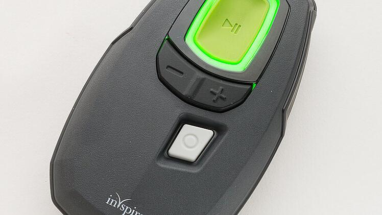 Mithilfe einer Fernbedienung schaltet der Patient den Zungenschrittmacher vor dem Schlafengehen ein und nach dem Aufstehen wieder aus.