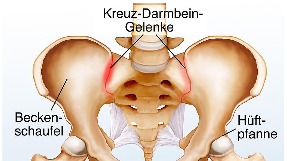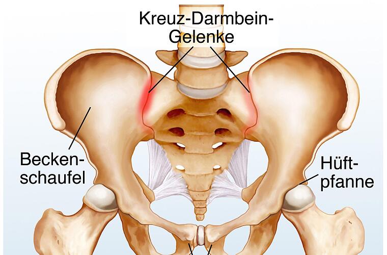 Die beiden handtellergroßen Gelenke verbinden die Wirbelsäule auf Höhe des Kreuzbeins mit den Beckenschaufeln.