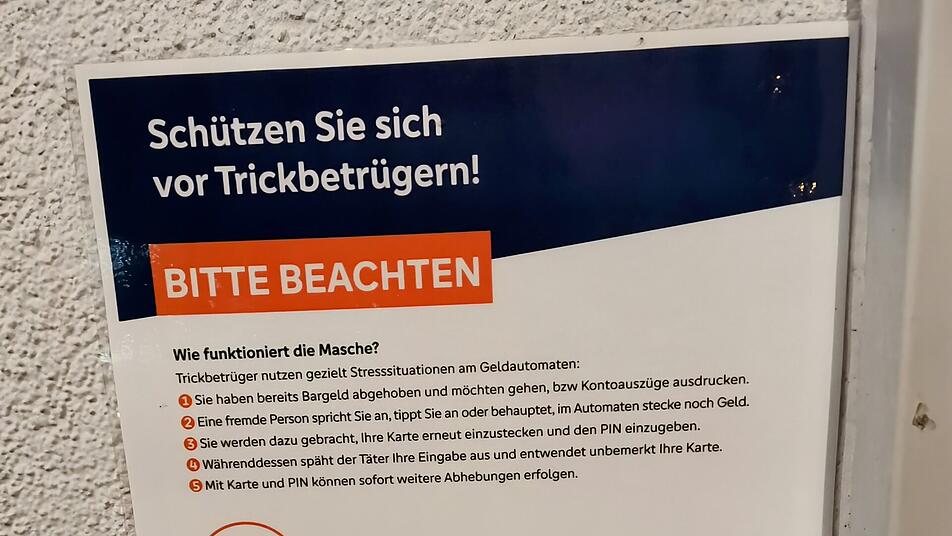Auch die VR Bank Bamberg-Forchheim appelliert momentan an Kunden, sich vor Trickbetrügern zu schützen. Auf aktuellen Aushängen beschreibt die Bank die Masche. Demnach würden Betrüger Stresssituationen am Geldautomaten gezielt ausnutzen. Ebenfalls gefährlich: Betätigst du nach dem Geldabheben nicht die rote Abbruchtaste, können Betrüger im Anschluss schlimmstenfalls Zugriff auf dein Konto bekommen.