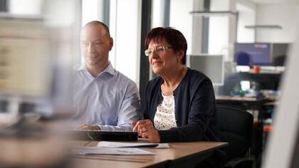 Mit der Zusammenarbeit im Team hatte Sabine Keller bislang keine Probleme. Sie ist eine der Absolventinnen des Programms "Ausbildung 50+" der Ing-Diba. Seit 2006 bildet die Bank jedes Jahr mehrere Ältere zu Bankassistenten aus, da die Kunden sich häufig auch lebenserfahrene Berater wünschen. Seit einem Jahr arbeitet sie mittlerweile in der Immobilienabteilung. Als sie damals auf Jobsuche ging, war sie gerade einmal 50 Jahre alt. Doch auf dem Arbeitsmarkt zählte sie bereits zum alten Eisen. "Ich bin sehr froh über diese Möglichkeit."