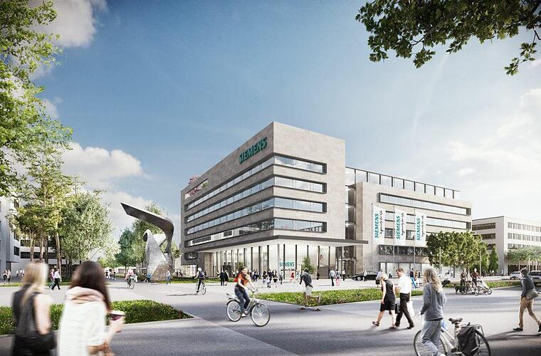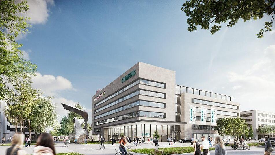 Mit  über 42.000 Mitarbeitern ist Siemens der größte Arbeitgeber Frankens. Unser Bild zeigt den Entwurf des Siemens-Campus in Erlangen, der voraussichtlich 2020 fertiggestellt wird. Foto: Siemens
